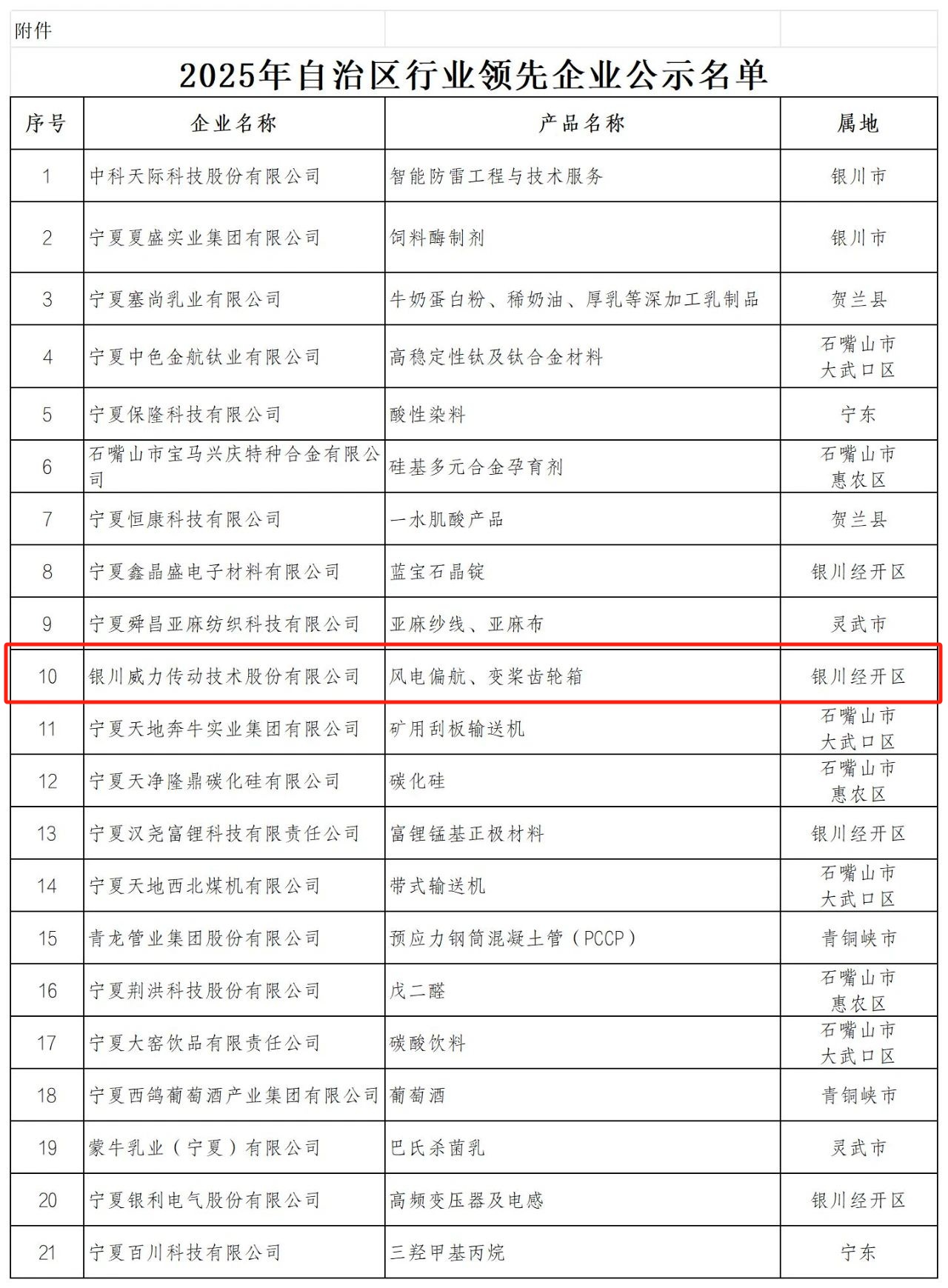 喜訊 | 威力傳動(dòng)榮膺2025年自治區(qū)行業(yè)領(lǐng)先企業(yè)